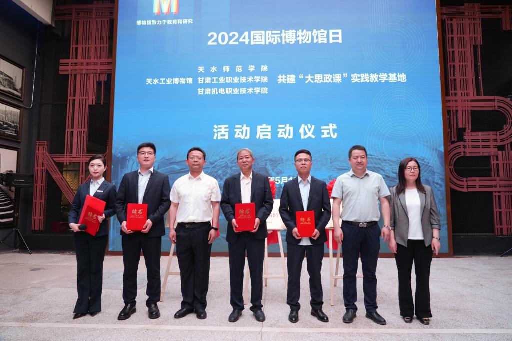为深入贯彻落实党的二十大精神和习近平总书记关于“大思政课”的重要指示批示精神,5月18日上午,天水师范学院、甘肃工业职业技术学院、甘肃机电职业技术学院与天水工业博物馆在天水工业博物馆工业历史馆举行馆校共建“大思政课”实践教学基地启动仪式。