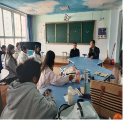 在实习第一天,各位领导与相关班主任对实习生开展了实习生会议,给实习生讲解了工作范围和学校的大致情况,分配了相关班级进行代理班主任的工作。藉口中学为各位实习生分发了听课笔记及工作用笔,各班班主任带实习生了解各自的班级,进行简单的自我介绍后,开始班主任的日常工作。