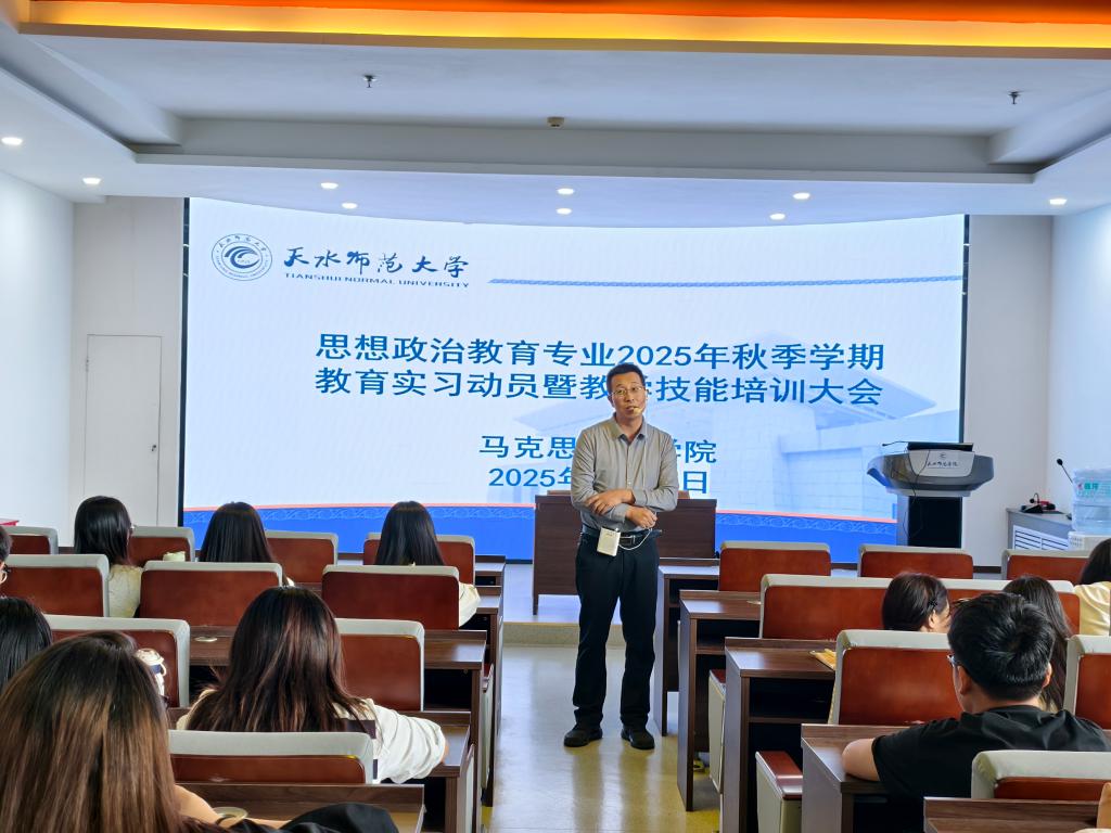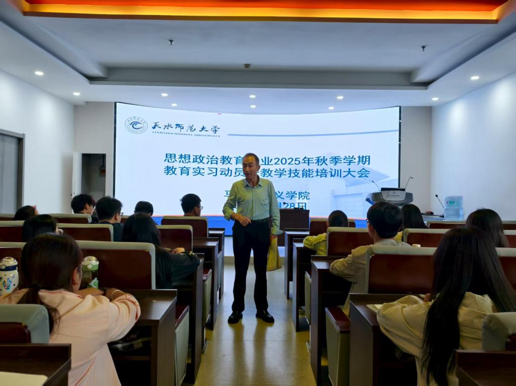 在为期两天的培训中,学院围绕“安全底线、师德修养、教学技能、教育研究”四大模块系统开展专题辅导。党委副书记李海涛从交通、住宿、饮食、用电等多维度强化安全教育,筑牢实习安全防线。党委书记陈俊亮开展思想政治与师德师风专题培训,强调“正人先正己”的职业准则。班主任阿斯燕从心理调适、认知准备和防诈骗等方面提供实用建议,系主任吴亚辉就教育实习手册规范填写进行说明。