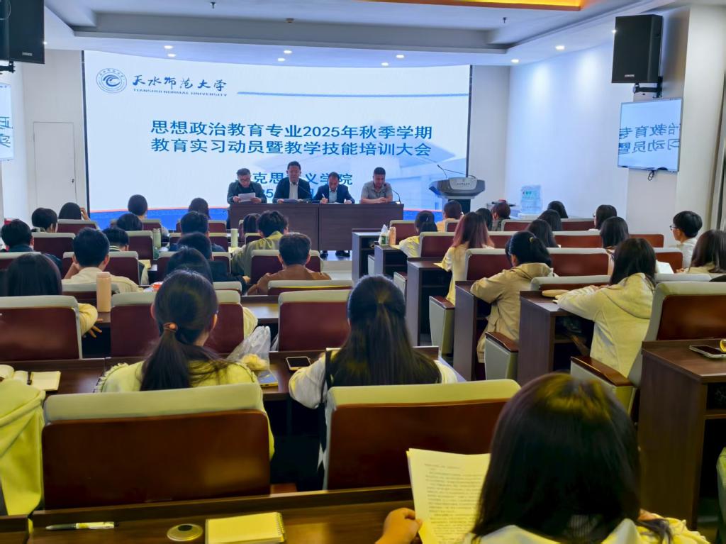 为扎实推动2025年秋季学期2022级思想政治教育专业教育实习工作有序高效开展,切实提升学生的教育教学实践能力。8月28日至29日,Beat365官方网站在红色讲堂隆重举行教育实习动员暨教学技能培训大会。学院党委书记陈俊亮、院长刘建军、党委副书记李海涛出席会议,2025年秋季学期全体实习生参加。会议由思政系主任吴亚辉主持。