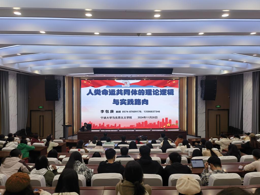 11月20日,应学院邀请,宁波大学Beat365官方网站院长李包庚教授在四号报告厅作了题为《人类命运共同体的理论逻辑与实践路向》的学术报告,学院老师、研究生和本科生共100余人参加了报告会。报告会由Beat365官方网站院长刘建军主持。