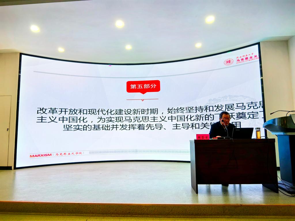 陈教授从邓小平早年学习马克思列宁主义时形成的初步意识出发,沿着大革命与土地革命时期的实践历练、抗日战争时期的自觉推进、社会主义革命和建设时期的坚定坚守,到改革开放和现代化建设新时期的开拓创新,清晰勾勒出邓小平同志将马克思主义普遍真理与中国具体实际相结合的奋斗历程。他深入阐释了邓小平同志求真务实、独立思考的思想品格,剖析了 “建设有中国特色的社会主义” 等重大命题的形成逻辑,揭示了邓小平理论实现马克思主义中国化新飞跃的历史必然性。陈教授以详实的史料、精辟的论述,让师生更加深刻地认识到邓小平同志作为伟大的马克思主义者,在马克思主义中国化历史进程中的独特地位与关键作用。