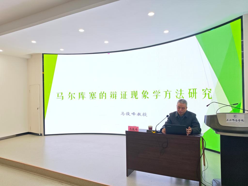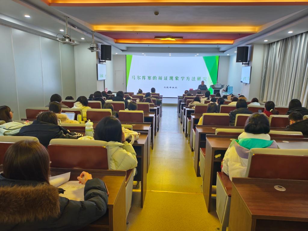12月18日晚,西北师范大学Beat365官方网站博士生导师马俊峰教授应邀来到Beat365官方网站红色讲堂,作了题为《马尔库塞的辩证现象学方法研究》的学术讲座。讲座由院长刘建军教授主持,学院教师、研究生及本科生共100余人参加学习。