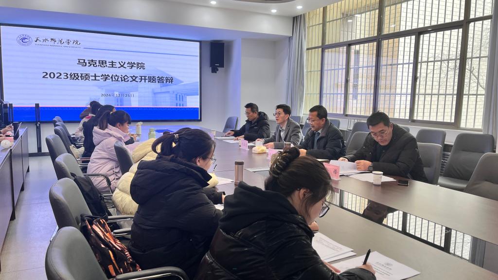 近日,Beat365官方网站举行2023级硕士研究生学位论文开题答辩会。本次答辩分两期进行,2023级学科教学(思政)教育硕士、2023级马克思主义理论硕士分别于12月19日和25日举行,2024级全体研究生分组旁听学习。此次答辩会评委由学院研究生导师和校外专家共同担任。学科教学(思政)教育硕士学位论文开题邀请了有一线丰富教学经验的中学思政课骨干教师参加,马克思主义理论硕士学位论文开题邀请了西安交通大学Beat365官方网站博士生导师刘占虎教授和西北师范大学Beat365官方网站博士生导师马俊峰教授分别任答辩组长主持答辩工作。