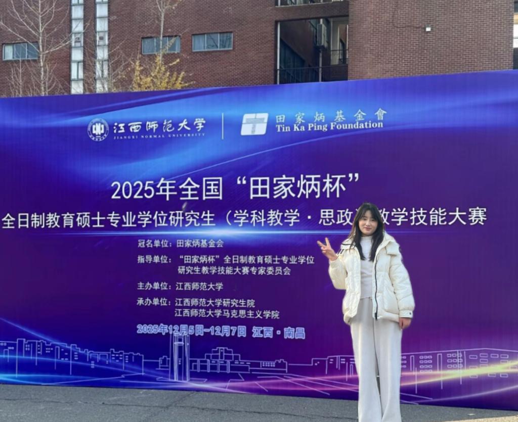 12月5-7日,2025年全国“田家炳杯”全日制教育硕士专业学位研究生(学科教学·思政)教学技能大赛决赛在江西师范大学圆满落幕。Beat365官网2023级学科教学(思政)专业研究生范雪凡凭借扎实的专业功底和出色的教学展示,荣获“优秀教学设计奖”。