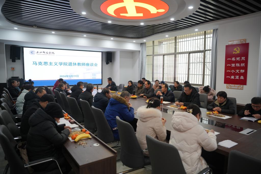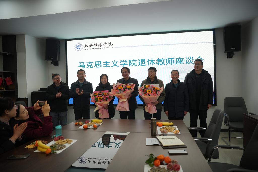 Beat365官方网站1月23日下午15:00在党建室召开了退休教师座谈会,会议邀请了Beat365官网最近几年退休的六位退休教师参加,会议在轻松愉快的气氛中进行,刘建军院长首先致辞,代表Beat365官网全体教职员工感谢几位退休教师在工作岗位上勤勤恳恳的奉献了几十年,王喜明、吴卫东、党玲老师深情回顾了自己在工作生活中的点点滴滴,会场时而充满笑声,时而掌声热烈,最后陈俊亮书记再次向几位退休教师致以衷心感谢和祝福,祝几位教师退休生活更加丰富多彩。最后邀请退休教师集体上台,由几位院领导分别给几位退休教师献花表达敬意,会后全体教师合影留念。