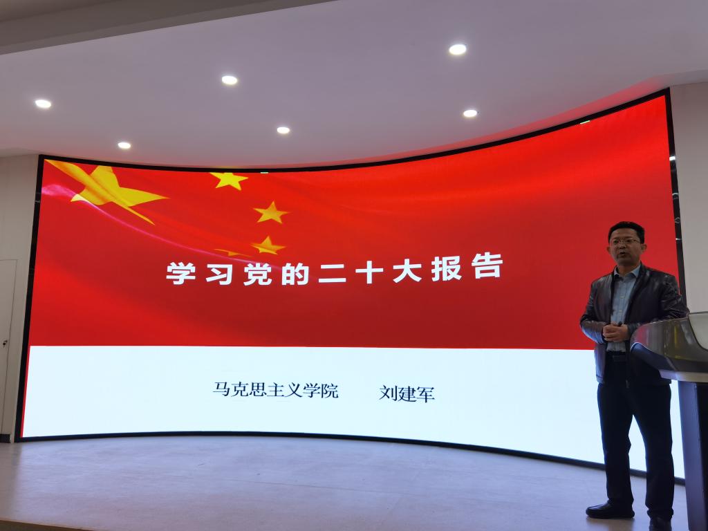 会上,刘建军系统地从过去五年的工作和新时代十年的伟大变革、开辟马克思主义中国化时代化新境界、明确新时代新征程党的使命和任务、加快构建新发展格局、实施科教兴国战略、发展全过程人民民主、坚持全面依法治国、推进文化自信自强、增进民生福祉、推动绿色发展、推进国家安全体系和能力现代化、实现建军一百年奋斗目标、坚持和完善“一国两制”、促进世界和平与发展、坚定不移全面从严治党等十五个方面深入学习党的二十大报告的核心内容、丰富内涵和精神要义。同时,对党的新征程、取得的举世瞩目的新成就、新时代十年的伟大新变革、当代中国马克思主义和21世纪马克思主义新理论、准确把握新形势、勇于进行新斗争、以中国式现代化推进中华民族伟大复兴、面向强国复兴的战略任务、以党的建设作为战略保障、牢记“五个必由之路”等亮点作了深入浅出的阐释。