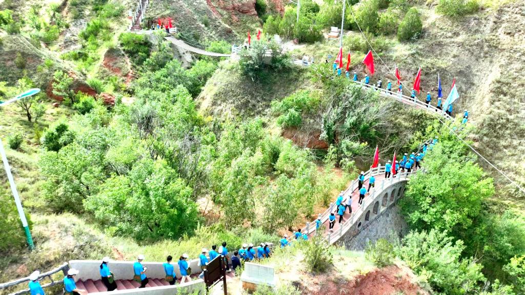 在红军会宁会师旧址,师生代表向革命先烈敬献花篮、鞠躬致敬。启动仪式结束后,师生从红军会宁会师旧址出发,沿着红军长征胜利景园、桃花山文化广场、会南路追寻红色足迹。12公里,4小时,师生们背诵诗词,讲述红色故事,行走中的微思政课、寻访长征路上的红色足迹,传唱红色歌曲《唱支山歌给党听》《过雪山草地》《四渡赤水出奇兵》《我和我的祖国》等,带着感情重温革命历史、缅怀革命先烈,传承红色基因、汲取奋进力量。