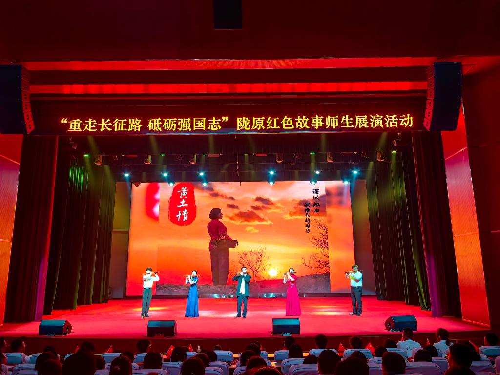在陇原红色故事师生展演活动中,陇南片区共同体成员单位带来的《黄土情》《长征永远在路上》《把一切献给党》,声情并茂地讲述陇原红色故事,传承红色基因,带来了一场生动深刻的“思政课”。